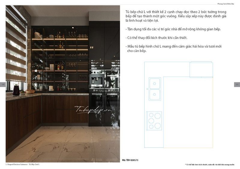 Trang trí nội thất phòng bếp chữ U phong cách đương đại đẹp, sang trọng tại biệt thự cao cấp Hải Phòng.