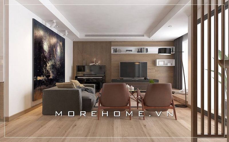 Mẫu tủ kệ phòng khách gỗ công nghiệp hiện đại cho nhà phố Lake View- Tp Hồ Chí Minh