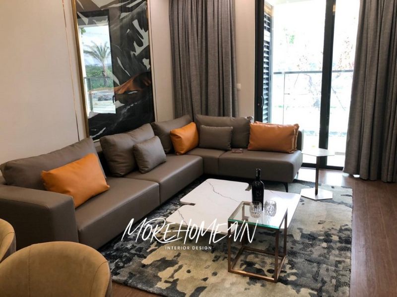Mẫu bàn ghế sofa hiện đại mang tone màu nhã nhặn hài hòa về không gian và nội thất của phòng khách căn hộ cao cấp hiện đại.