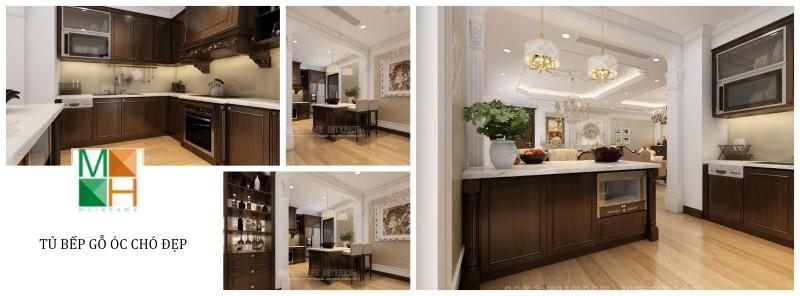 Mẫu thiết kế tủ bếp gỗ óc chó cao cấp , sang trọng đang " làm mưa, làm gió" và thống trị thị trường nội thất .