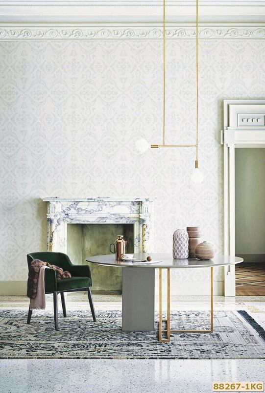 Giấy dán tường hàn quốc 88267-1 là mẫu họa tiết hoa văn to bản kết hợp với nền giấy gam màu sáng
