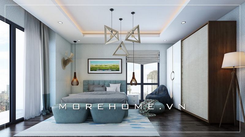 Đèn thả 2 bên đầu giường tạo điểm nhấn riêng đặc biệt cho không gian thẩm mỹ cao