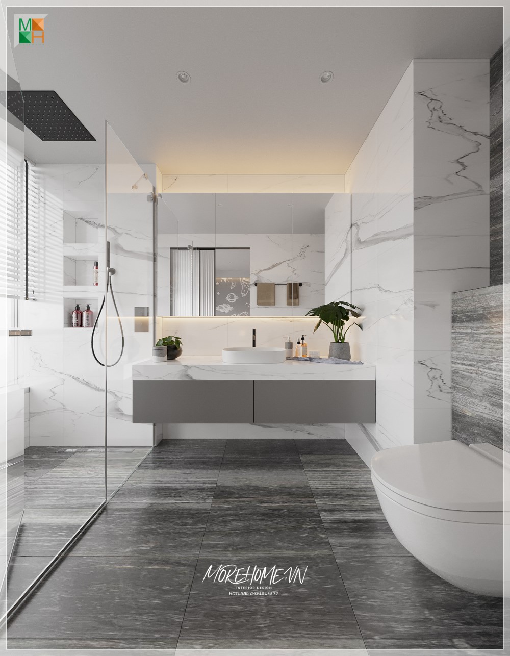Lựa chọn đá lát nền và tường cho phòng tắm sạch sẽ và ăn gian được diện tích phòng bởi ánh sáng