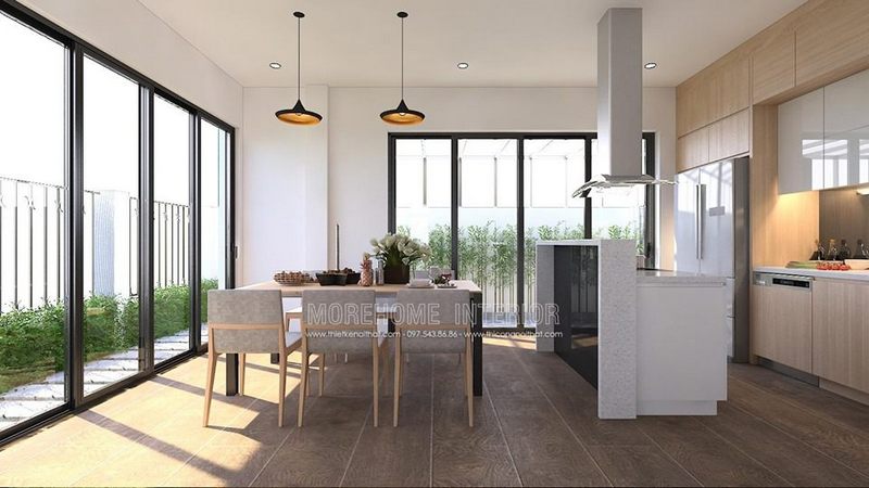 Thiết kế phòng ăn lồng trong phòng bếp vừa tạo không gian hiện đại gọn gàng vừa tiện nghi, sang trọng cho biệt thự, nhà phố.