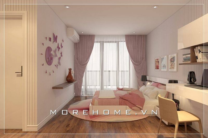 Thiết kế phòng ngủ bé gái mềm mại, đẹp mắt, căn phòng luôn tràn ngập ánh sáng tự nhiên nhờ phần cửa ban công được thiết kế theo kích thước lớn