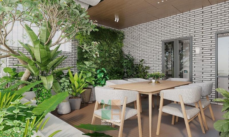 Không gian sống xanh trồng cây cảnh điều hòa bầu không khí trong lành mát mẻ.