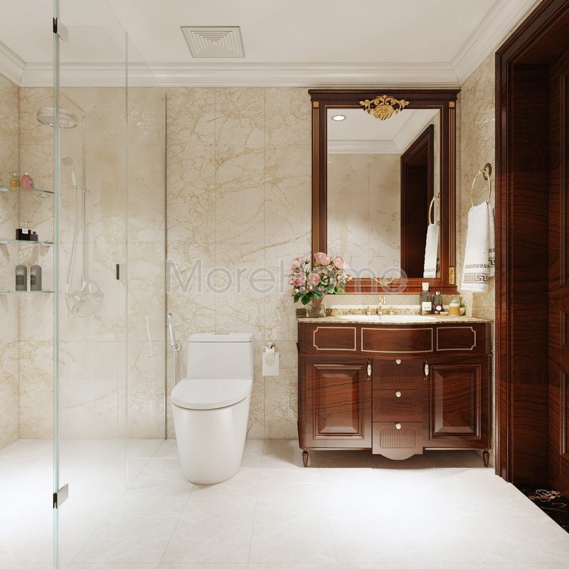Phòng tắm có bồn tắm tân cổ điển thiết kế nội thất bay trí sắp xếp hợp lí mang tới không gian hiện đại và tiện nghi.