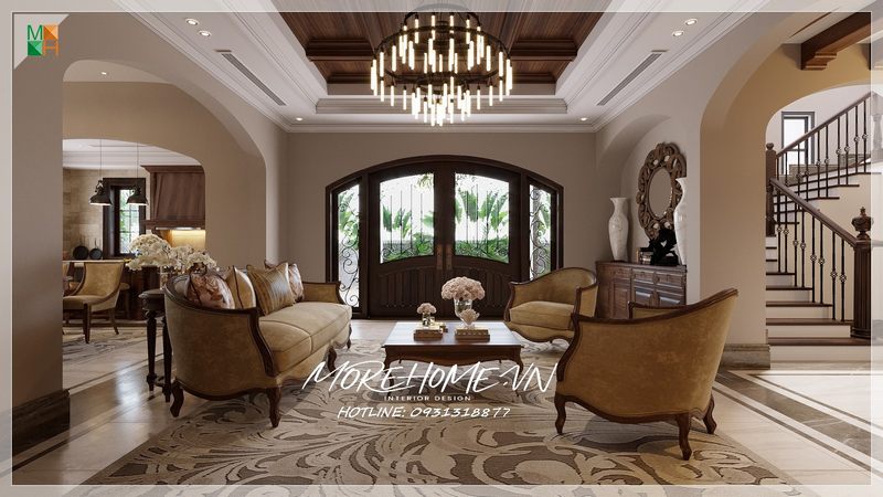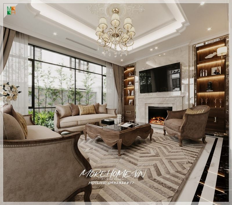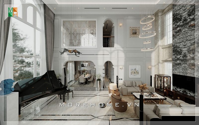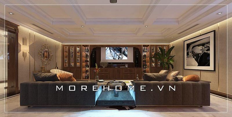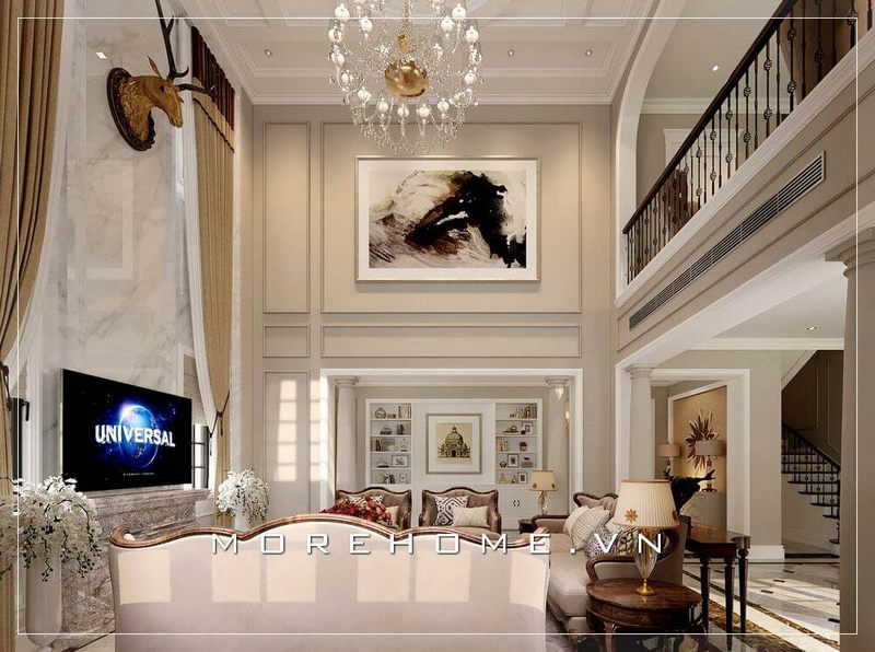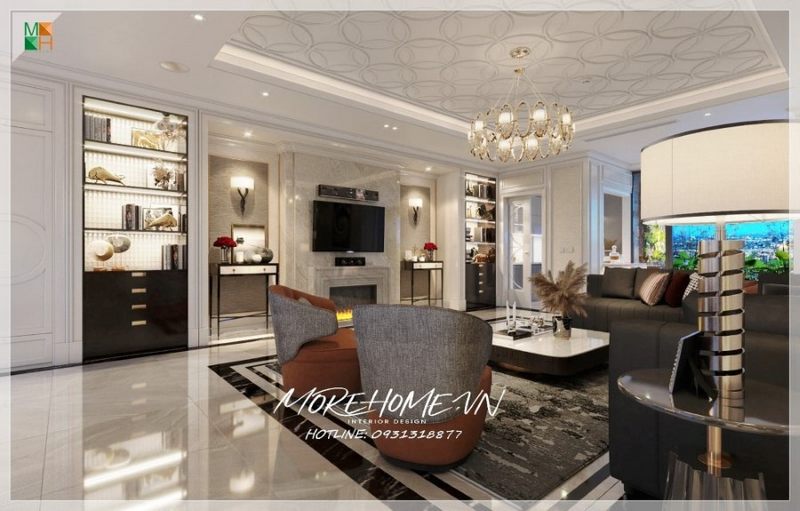 Morehome gợi ý cho bạn mẫu thiết kế nội thất phòng khách chung cư, nhà phố tiện nghi và sang trọng mang phong cách tân cổ điển.