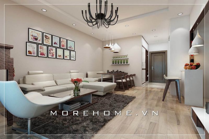 Sự hài hòa trong màu sắc, cách bố trí nội thất phù hợp những mẫu thiết kế phòng khách chung cư hiện đại của Morehome luôn là sự lựa chọn ưu tiên hàng đầu của mọi khách hàng.