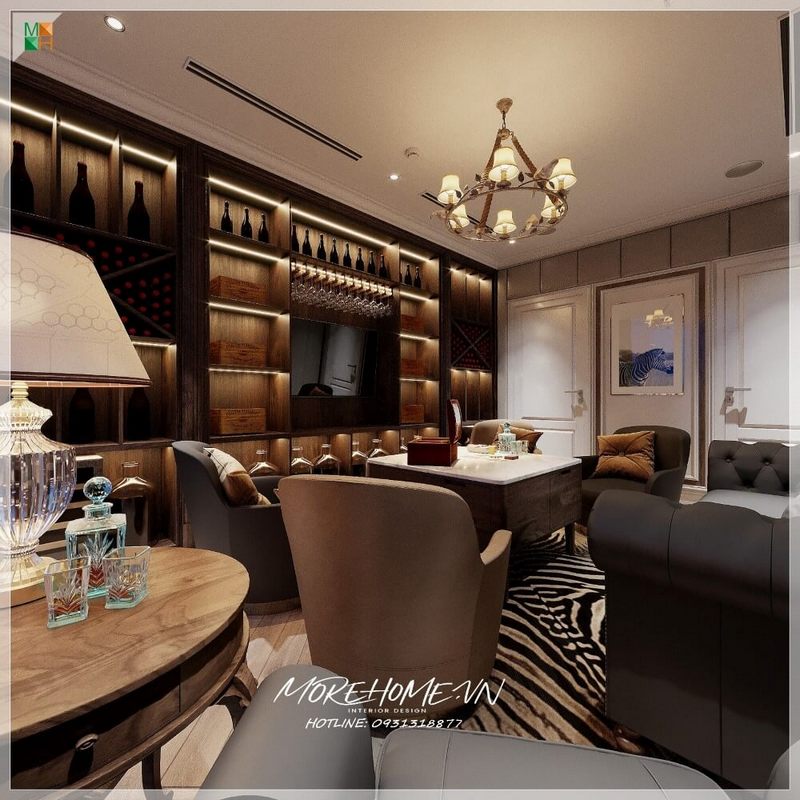 Mẫu thiết kế phòng rượu nhỏ ấm cúng với nội thất gỗ tự nhiên bọc da sang trọng