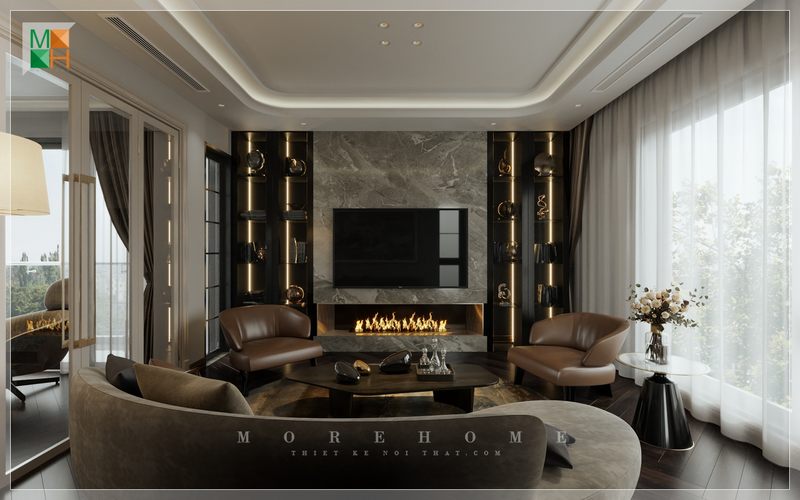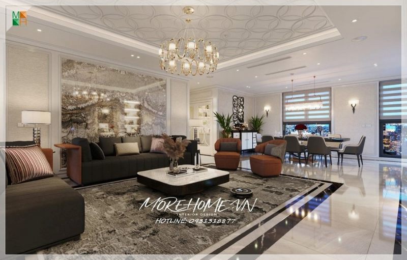 Ngỡ ngành trước mẫu thiết kế phòng khách chung cư đẹp sang trọng được thiết kế bởi Morehome.