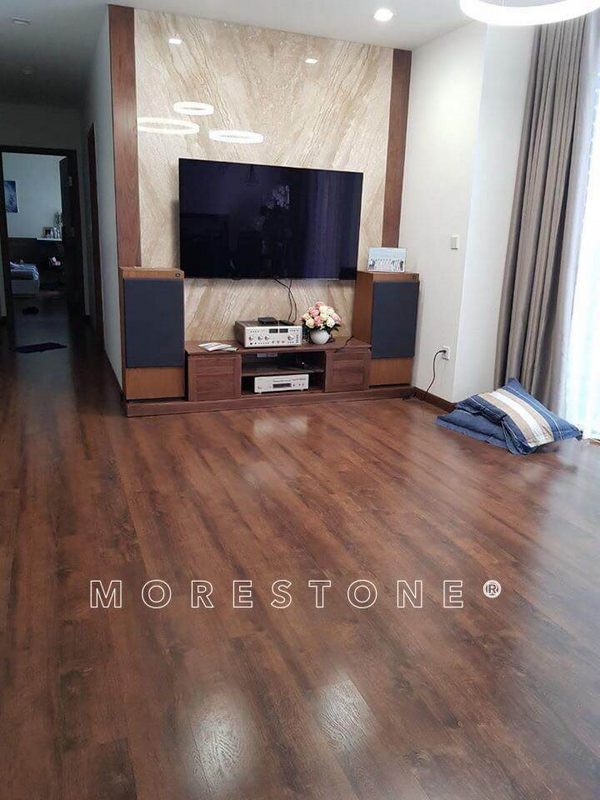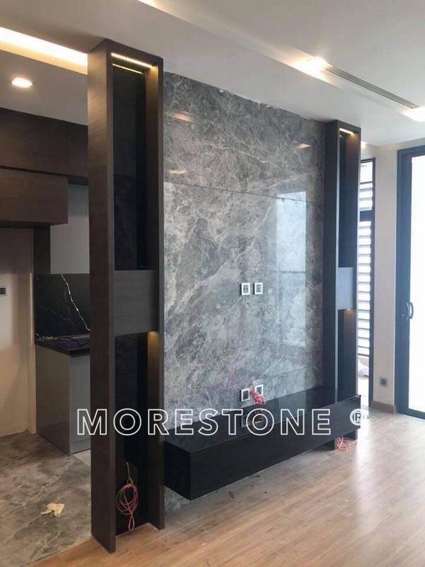 Morehome thi công đá ốp vách tivi bằng đá granite cao cấp với hoa văn tự nhiên sang trọng cho công trình HN
