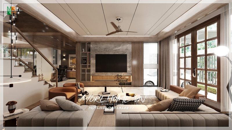 Với phong cách thiết kế hiện đại và cách bố trí các món đồ nội thất đẹp mắt, gia đình đã tạo ra một không gian phòng khách hấp dẫn, làm cho mọi người phải mê mẩn.