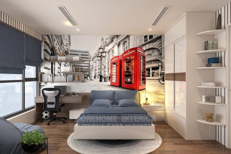 Giường ngủ gỗ công nghiệp với tone màu trắng chủ đạo sẽ làm cho căn phòng trở nên sáng sủa và tinh tế hơn.