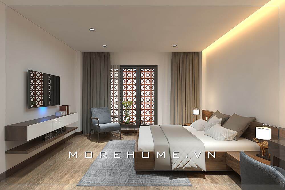 Giường ngủ chung cư hiện đại, được đặt chính giữa căn phòng mang lại cảm giác cân bằng và đảm bảo cho sự nghỉ ngơi được thoải mái hơn